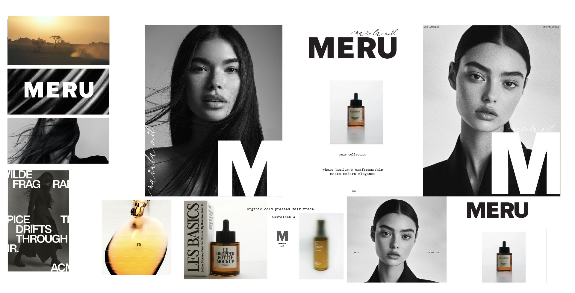 Meru is a brand concept for a prestige haircare collection handcrafted from organic, fair-trade marula oil sourced from a women’s cooperative in South Africa—rooted in sustainability, heritage, and high-performance beauty.
